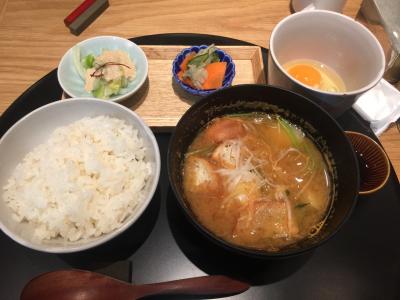 朝の御膳のオマール海老の味噌汁580円を食べました。プラス100円で生たまごを追加!