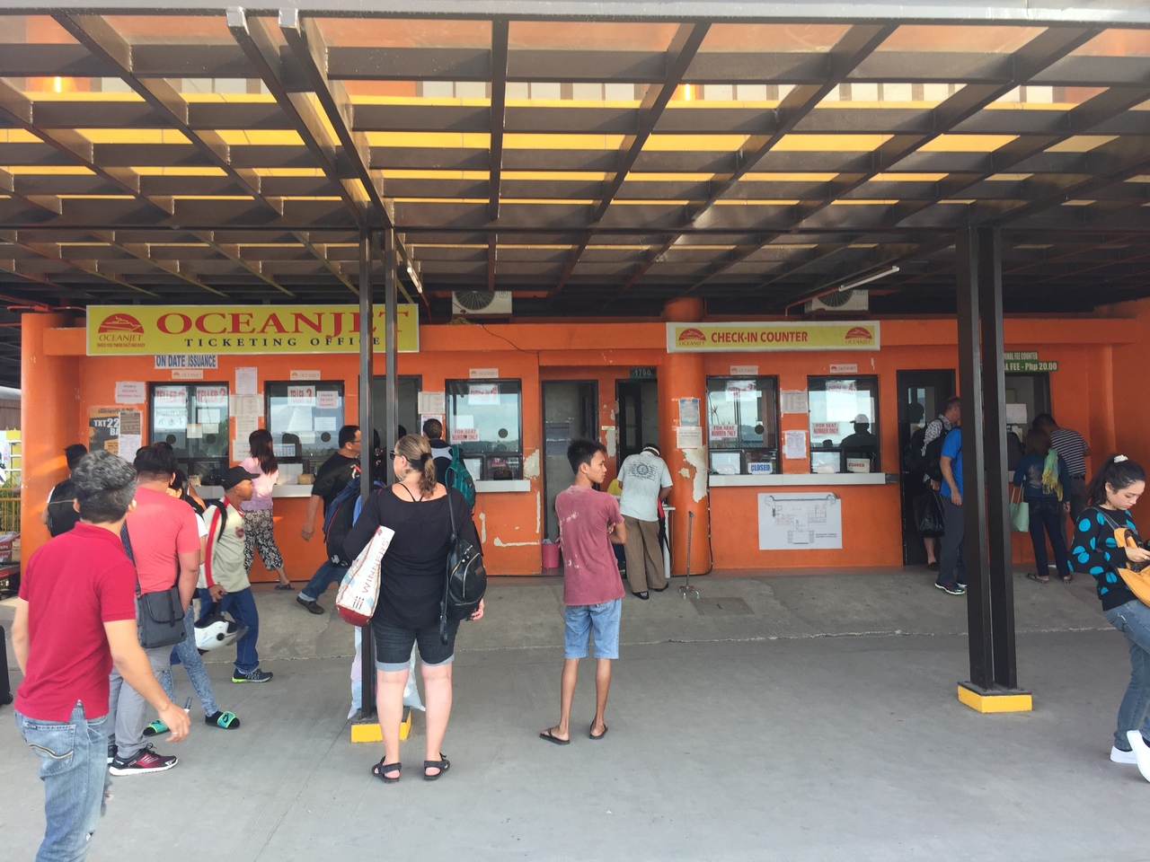 オーシャンジェットのチケットは昨日SMシティーセブ内のmail and moreで購入済でした。往復ツーリストクラスで850ペソ!ピア1に車で入るのに10ペソ、利用料で25ペソ別途かかります。
