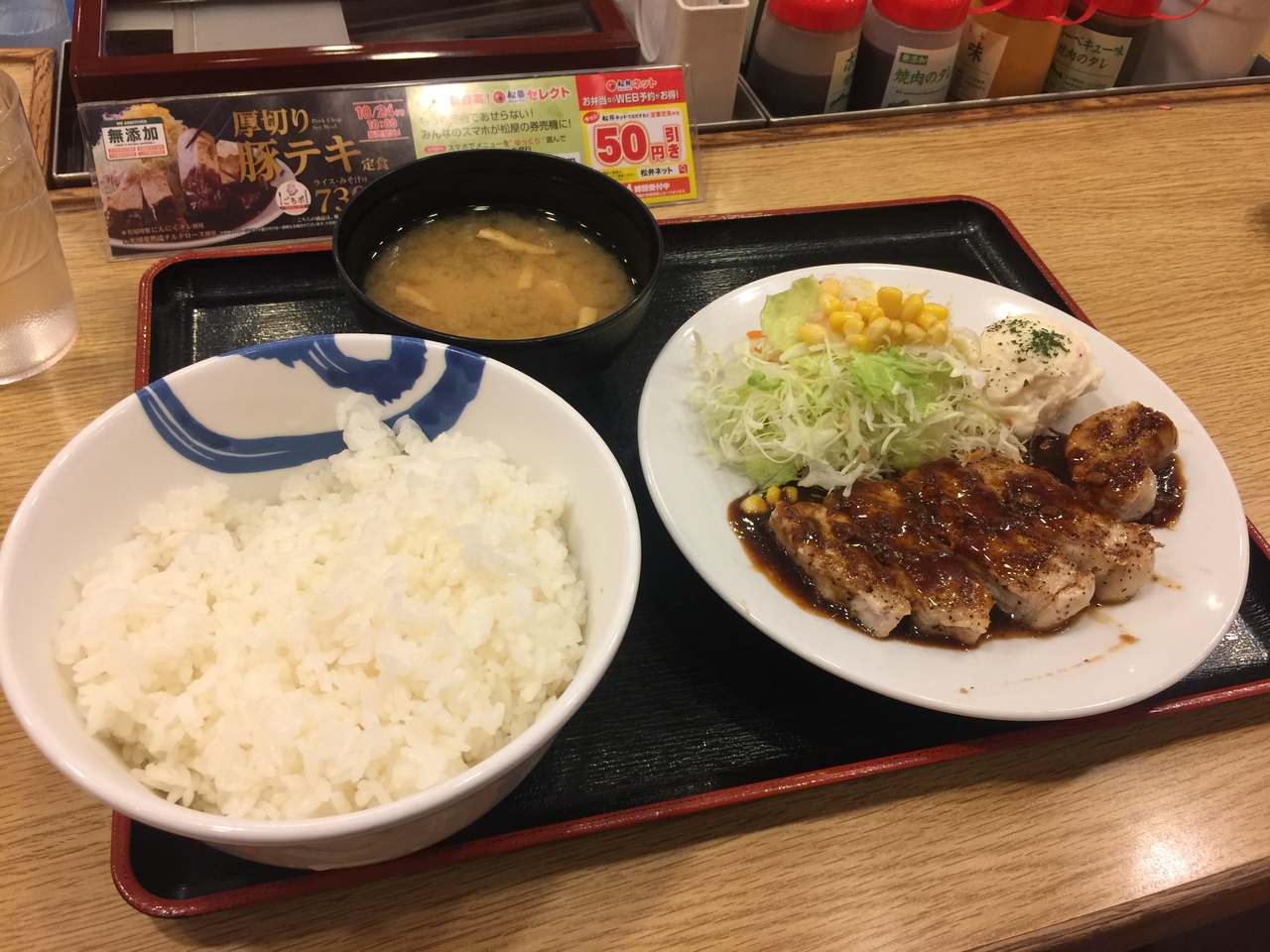 たのんだのはトンテキ定食630円!四日市で食べたトンテキはウスターソースみたいな感じでしたが醤油ベースかな!?こっちの方が好きですね(^ ^)