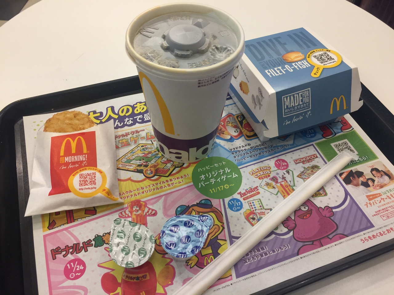 コンビが安くていいやとたのもうとしたらありませんでした。仕方なくフィレオフィッシュのセットに!海外に行くときは日本の小銭が邪魔になるのでクレジットカードを使います。マックでも使えるんですよ!国際空港ですからね。