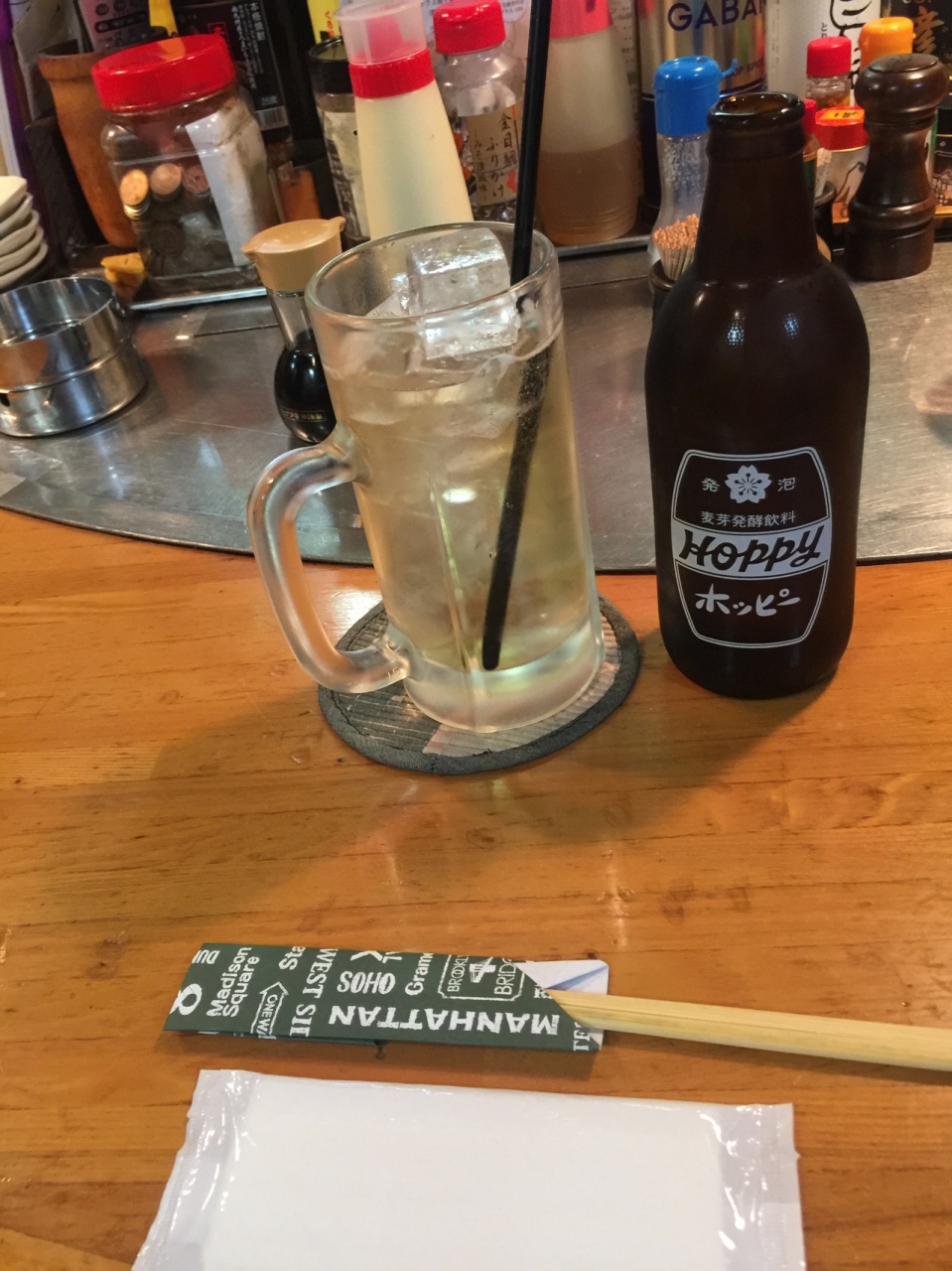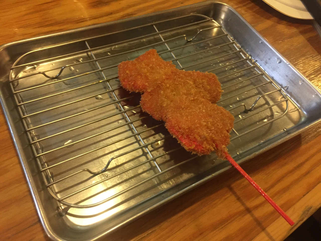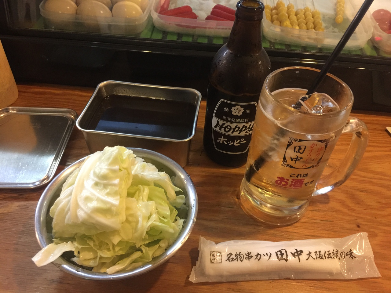 食べたのはもちろん串カツ!なすび、たまねぎ、豚、紅生姜!ホッピー白でいただきます。ホッピーの中の量が多い。中おかわりを数回、、、酔っ払うな~(^ ^)