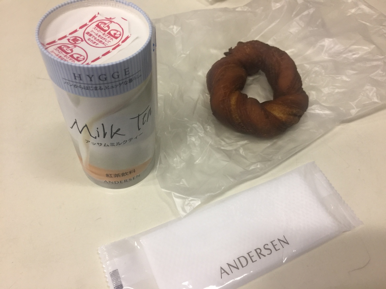 アッサムミルクティ120円とビスケットドーナツ160円を買いました。