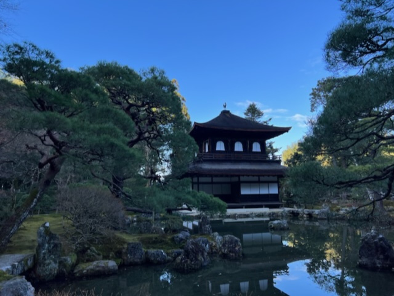 新横浜駅から始発の東海道新幹線で京都駅に。先ず最初に向かったのは銀閣寺でした。市バスで京都駅から銀閣寺道まで行きそこから歩きました。簡素な東山文化の象徴的な寺院です。向月台等の庭も見どころですね。- 旅行時期
