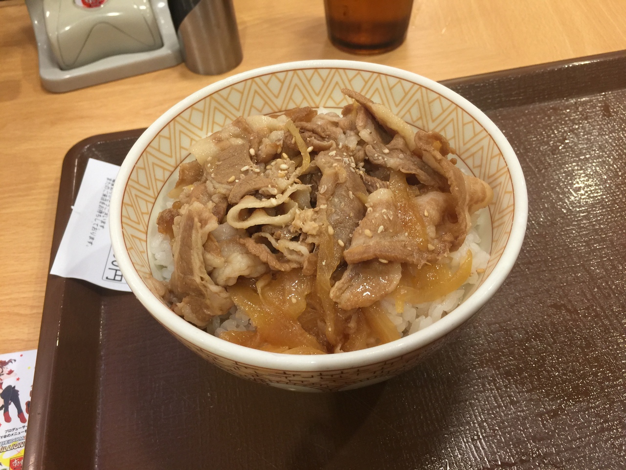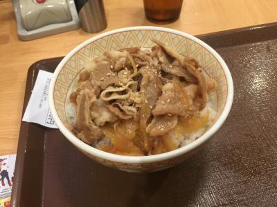 食べたのは豚丼並350円!すき家だと牛丼より豚丼の方がイイかなと、、、イマイチですね~(>_<)- 旅行時期
