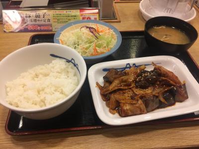 食べたのは豚と茄子の辛味噌炒め定食!秋になると出てくるメニューですね。好きなメニューです(^ ^)