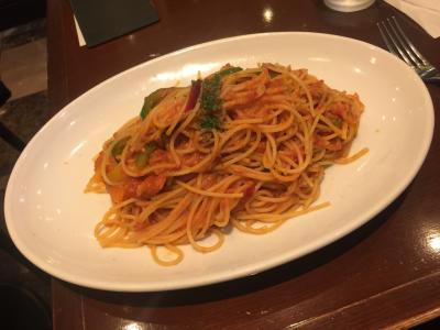 たのんだのはパスタ!ツナとパプリカのトマトソーススパゲッティ!美味しいですよ(^ ^)