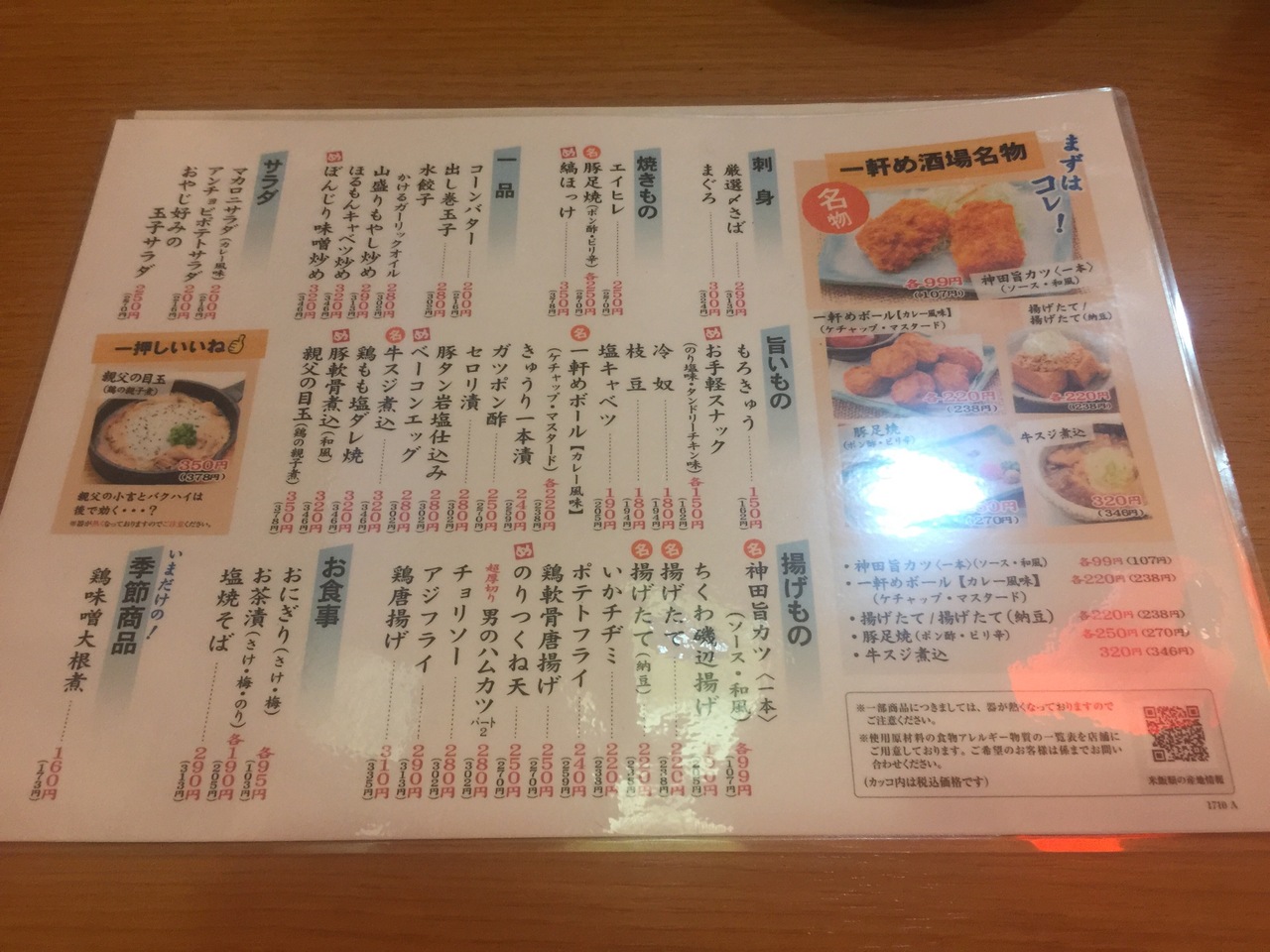冷奴180円、神田旨カツ99円を2本、揚げたて(納豆)、山盛りもやし炒め、、、白鶴は3杯いきましたよ。