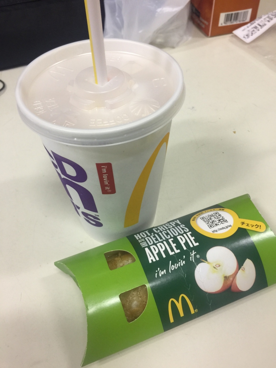 買ったのはマックシェイクのチョコレートM200円とホットアップルパイ100円!