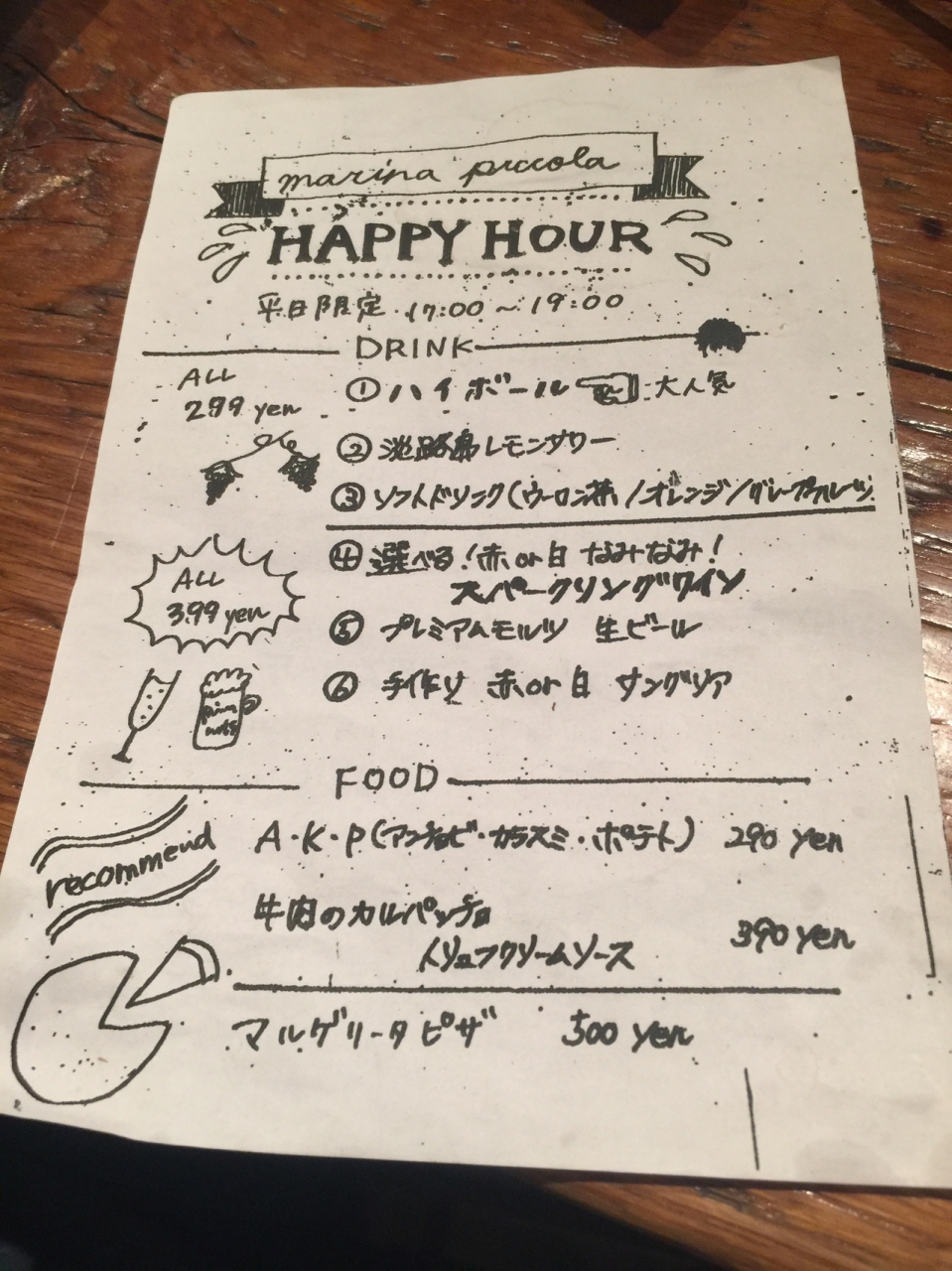 平日の17:00-19:00はハッピーアワー(^ ^)