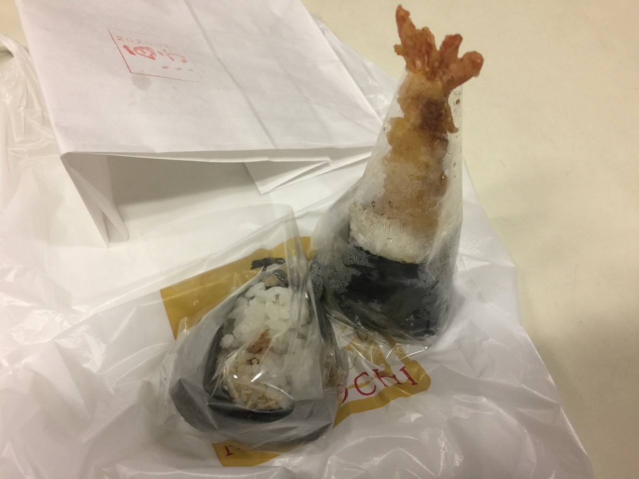 買ったのは海老天むす290円とおかかむすび200円!ご飯はかなり少なめですが味はナイスですね(^ ^)