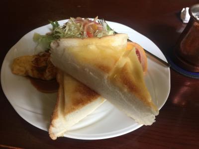 トーストは厚切りでとけたバターがこぼれないように切り込みが入ってます。フルーツはグレープフルーツと柿でした。アイスコーヒーには生クリームがのってます。味もイイですね(^ ^)- 旅行時期