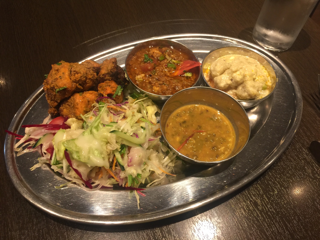 たのんだのはランチブュッフェ!カレーは3種類でキーマ、ベジタブル、ダールでした。