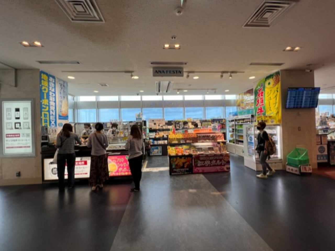 南ぬ島石垣空港でチェックインを済ませて手荷物検査を終えてゲートに。ゲート近くにはANA系とJAL系の売店が1店ずつあります。ANAフェスタでミンサータオルとオリオンビールを買いましたよ。- 旅行時期