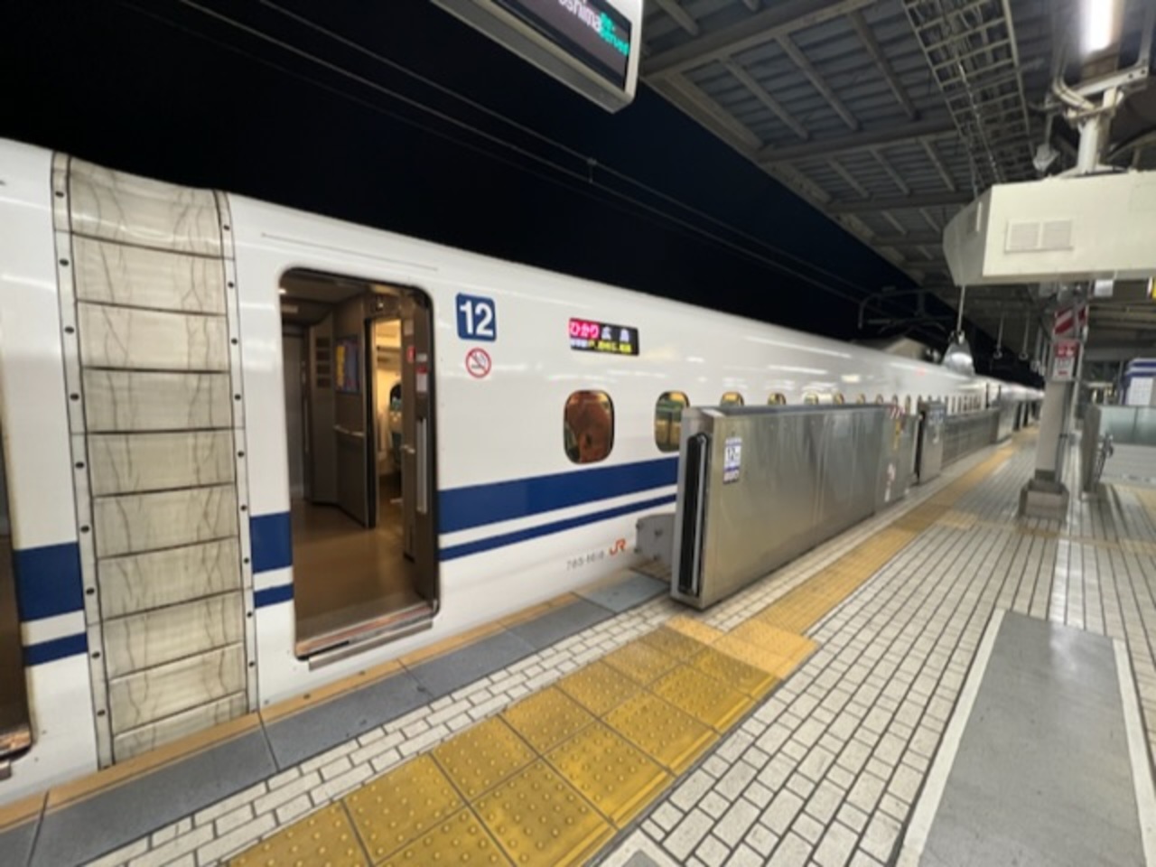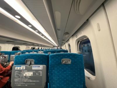 往路は新横浜駅発6:00のひかりでした。京都駅には7:59に着きました。新横浜駅の売店で買った東海道新幹線弁当にビールと日本酒をいただきながら快適な約2時間でした。スマホ充電、wifiもあって便利です。- 旅行時期