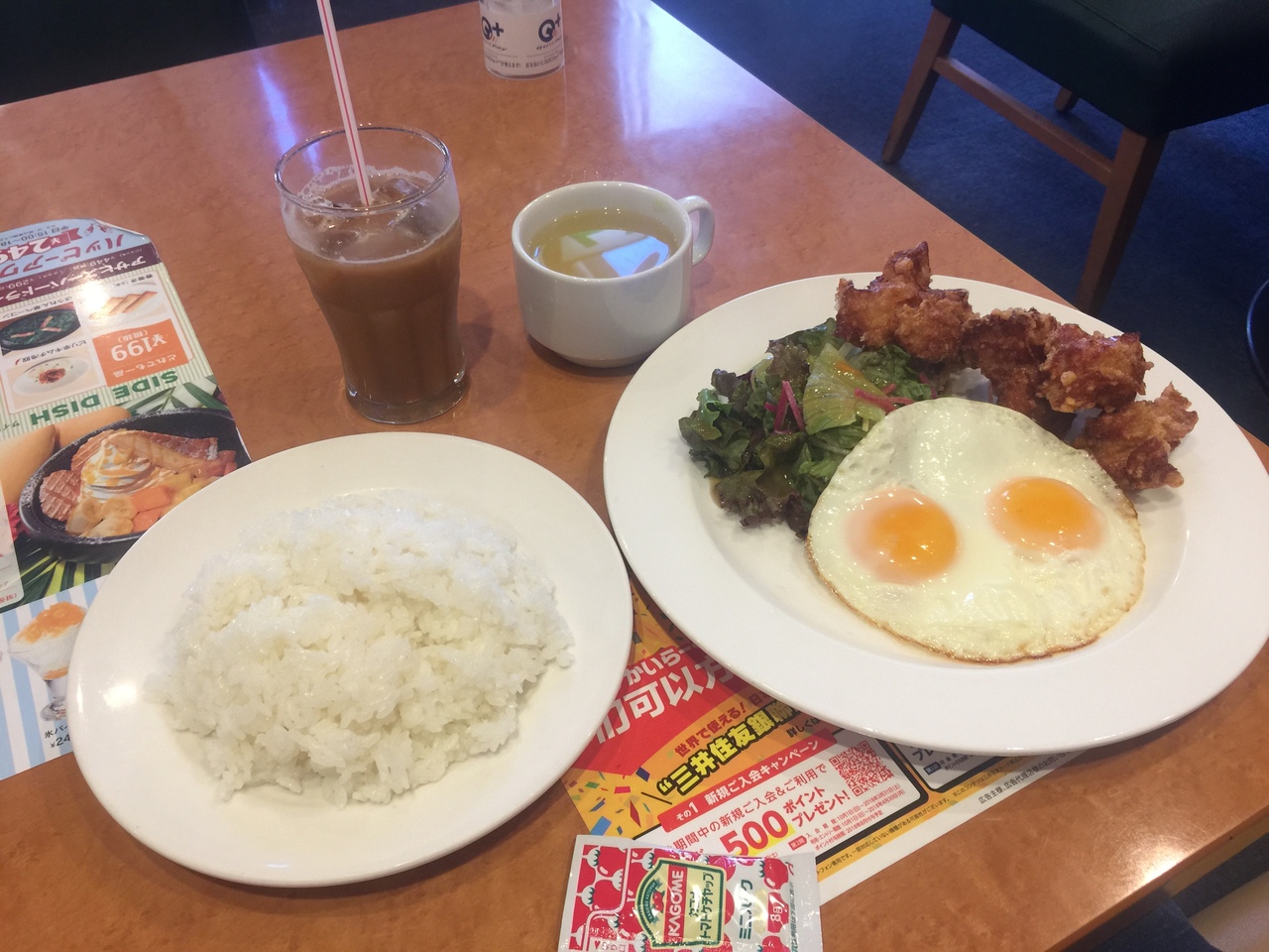 それに唐揚げをトッピング!5個で299円です。朝からガッツリですね(^ ^)- 旅行時期