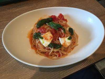 いただいたのは冷製モッツァレラのトマトソーススパゲッティとソルティスイカジュース!