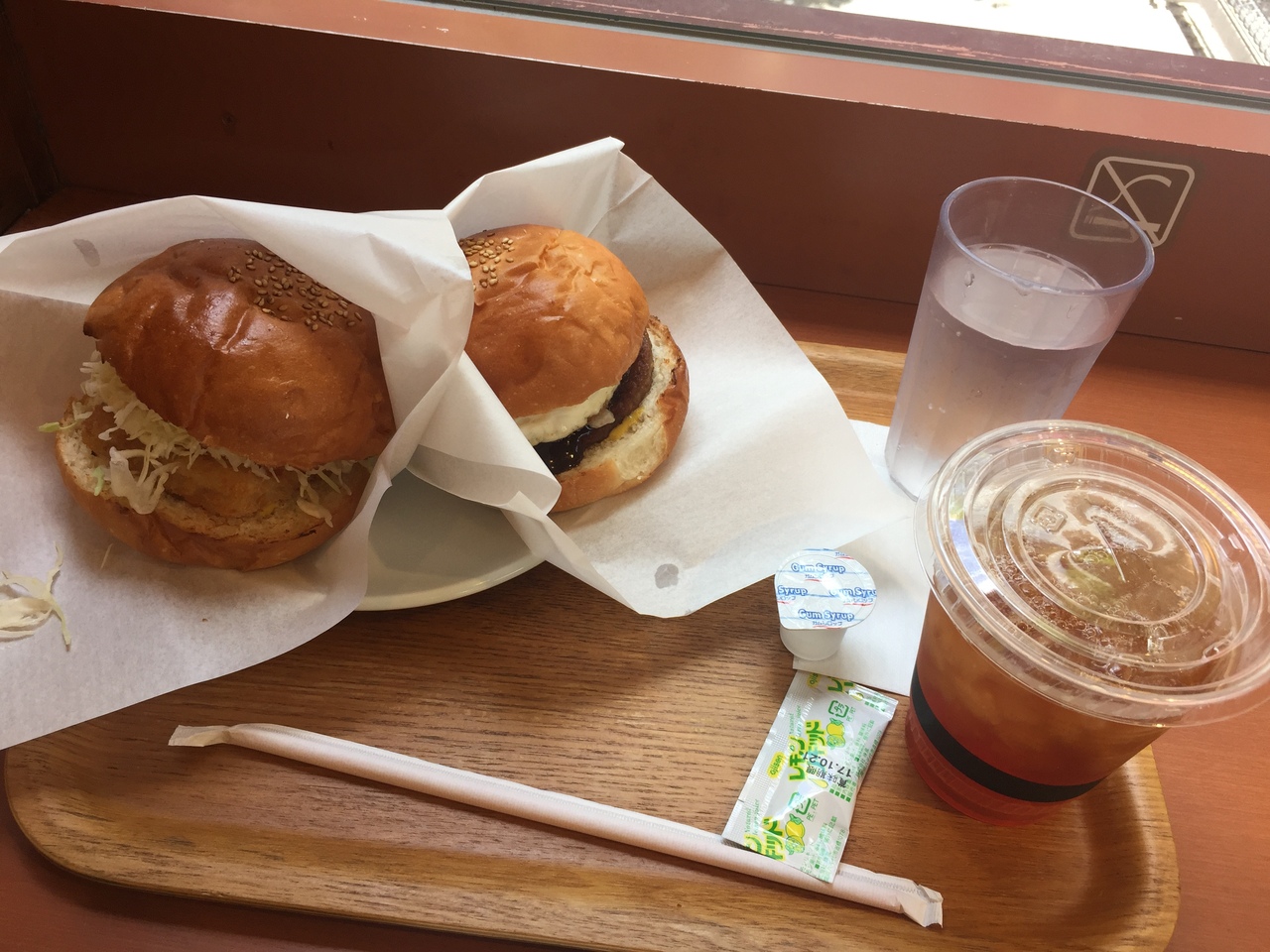 デミタマバーガーとフィッシュサンドにアイスティーレギュラー!