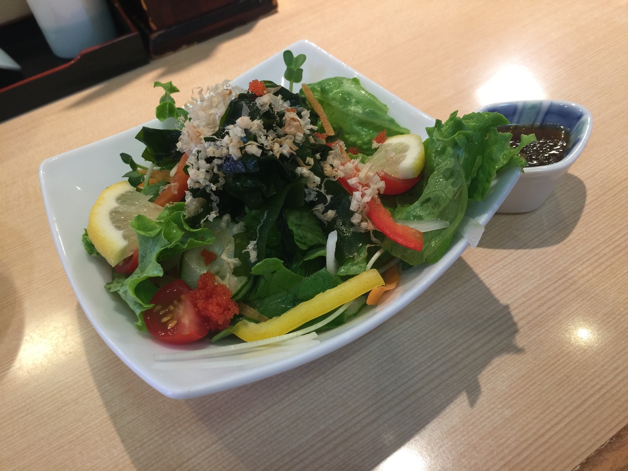 かき揚げ天ぷらはかりかり感は全くありません。厨房は狭く揚げるスペースなんてないからどこからかもってくるんでしょうけど、、、