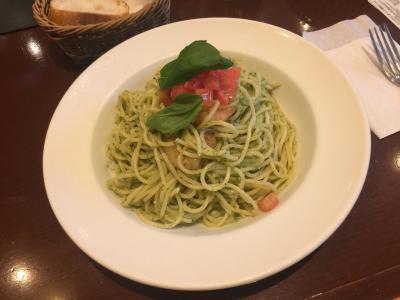 暑かったので海老とフレッシュトマトの冷製ジェノベーゼスパゲッティをオーダー!美味しいです。