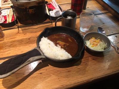 店内はキャンプ場をイメージしていてランタンやキャンプ道具が、、、スプーンはスコップ型ですよ。- 旅行時期