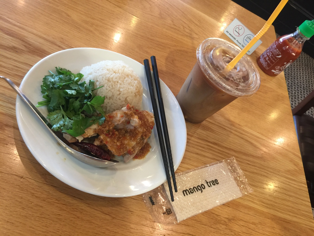 たのんだのはカオマンガイ!チキンとジャスミンライスにパクチーが、、、美味しいです(^ ^)