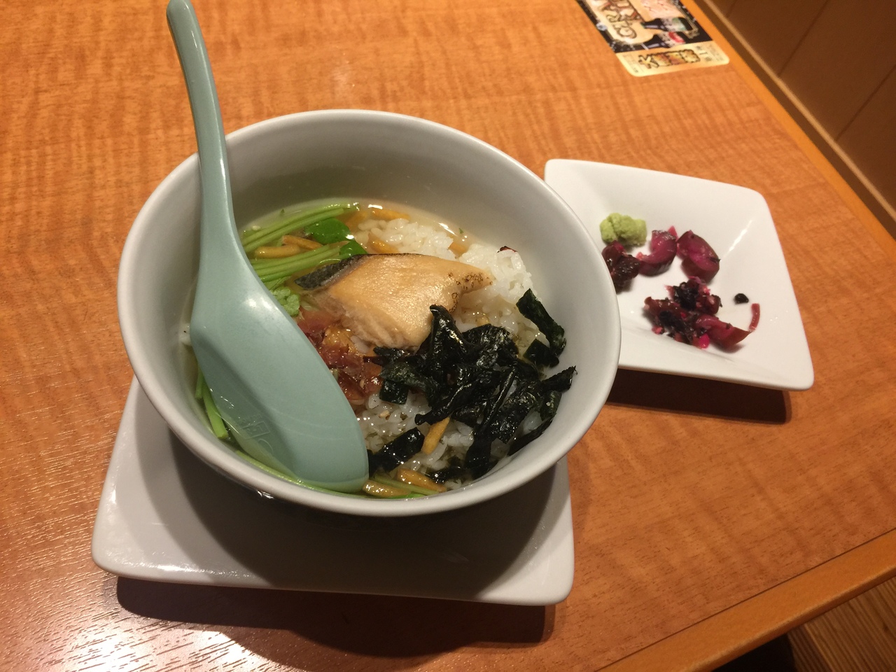 焼鳥の盛り合わせに山芋、最後にお茶漬けで〆!- 旅行時期
