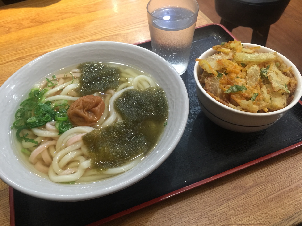 たのんだのは梅干ととろろ昆布うどん大盛とミニかき揚げ丼!