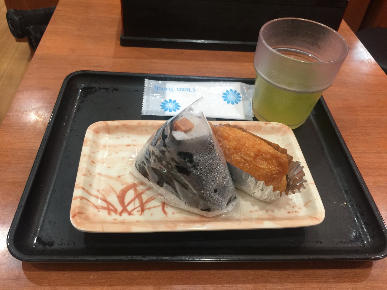 食べたのはたらこむすび144円と稲荷ずし93円!合わせて237円!