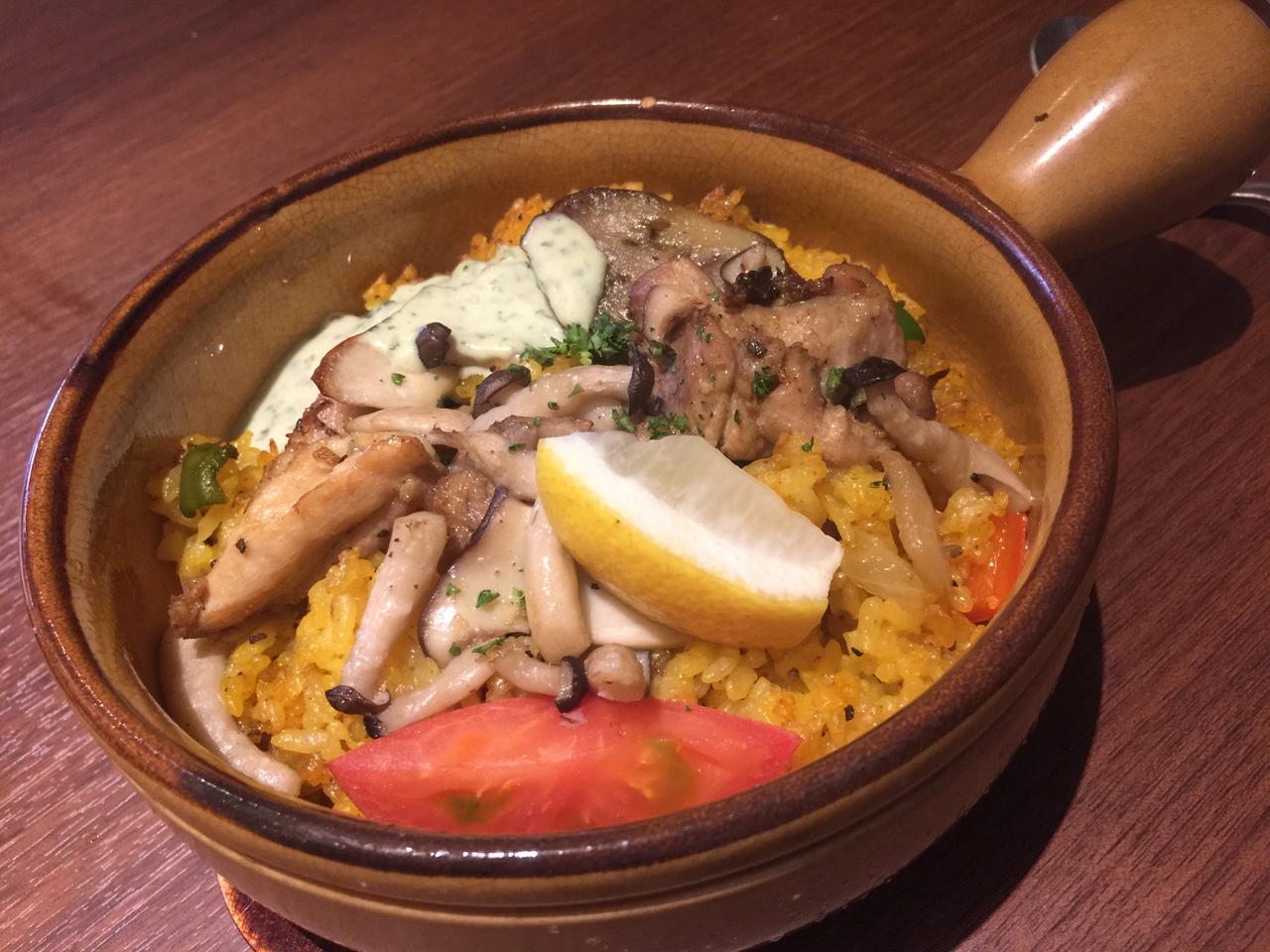 ランチメニューにはパスタなんかもありますがスペイン料理店なのでパエリアランチを!さすがにランチなのでパエリアパンというわけにはいかないのでしょう!?陶器に下ごしらえしたパエリアを入れて焼いた感じでしょうか!?レモンを搾って、、、味はなかなか良いです(^ ^)