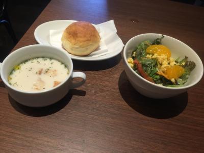 ランチにはサラダ、パン、スープ、ソフトドリンクが付きます。