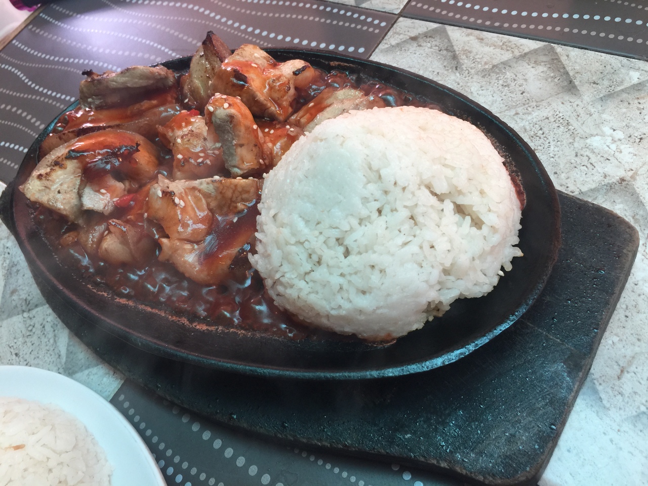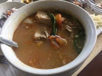 豚のシニガンやら豚の足を揚げたやつ、、、フィリピン風の刺身(マリネ)、ツナ、、、いろいろ食べました。
