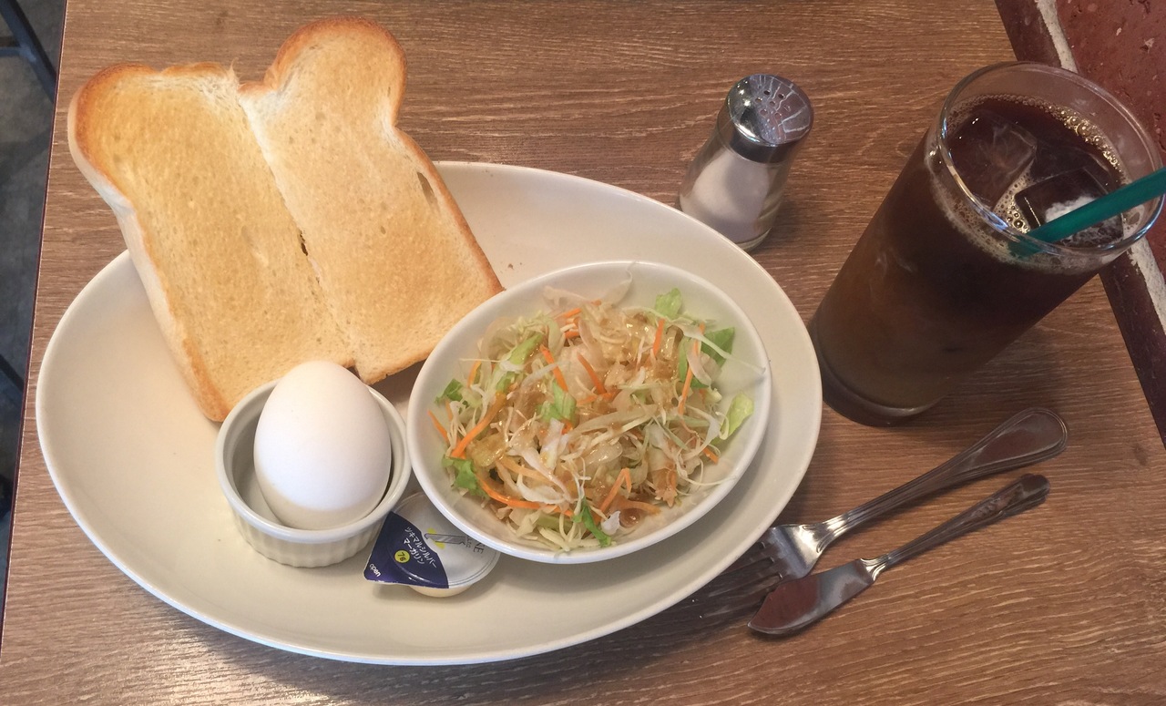 トーストセットは390円でトーストにサラダ、ゆで卵かヨーグルトをチョイスできて飲み物も付いて税込390円!コスパ高いですよね(^ ^)