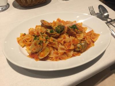 たのんだのはあさりのトマトソースファルファッレ!なかなか美味しいです。パスタセットはサラダ又はスープとドリンクが付きます。スープとアイスコーヒーをチョイス。スープはパンプキン!まいう~。- 旅行時期