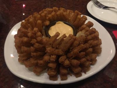 ブルーミンオニオンとステーキシーザーサラダをつまみに!