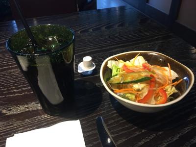 たのんだのは今日のピッツァ!1,400円ランチです。サラダが付きます。飲み物は別でアイスコーヒーをたのみました。
