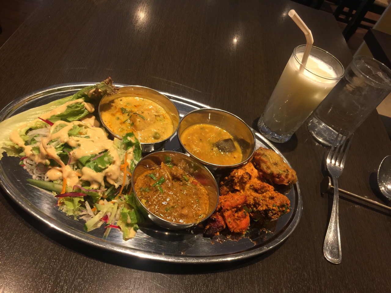 ランチビュッフェはカレーは3種類、サラダやチキン、揚げ物があります。ナンとライスももちろんおかわり自由です。飲み物は別です。