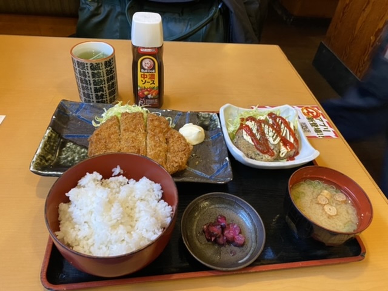 食べたのは本日の日替り定食800円!まぐろメンチカツといわしハンバーグでした。ヘルシーですね。- 旅行時期