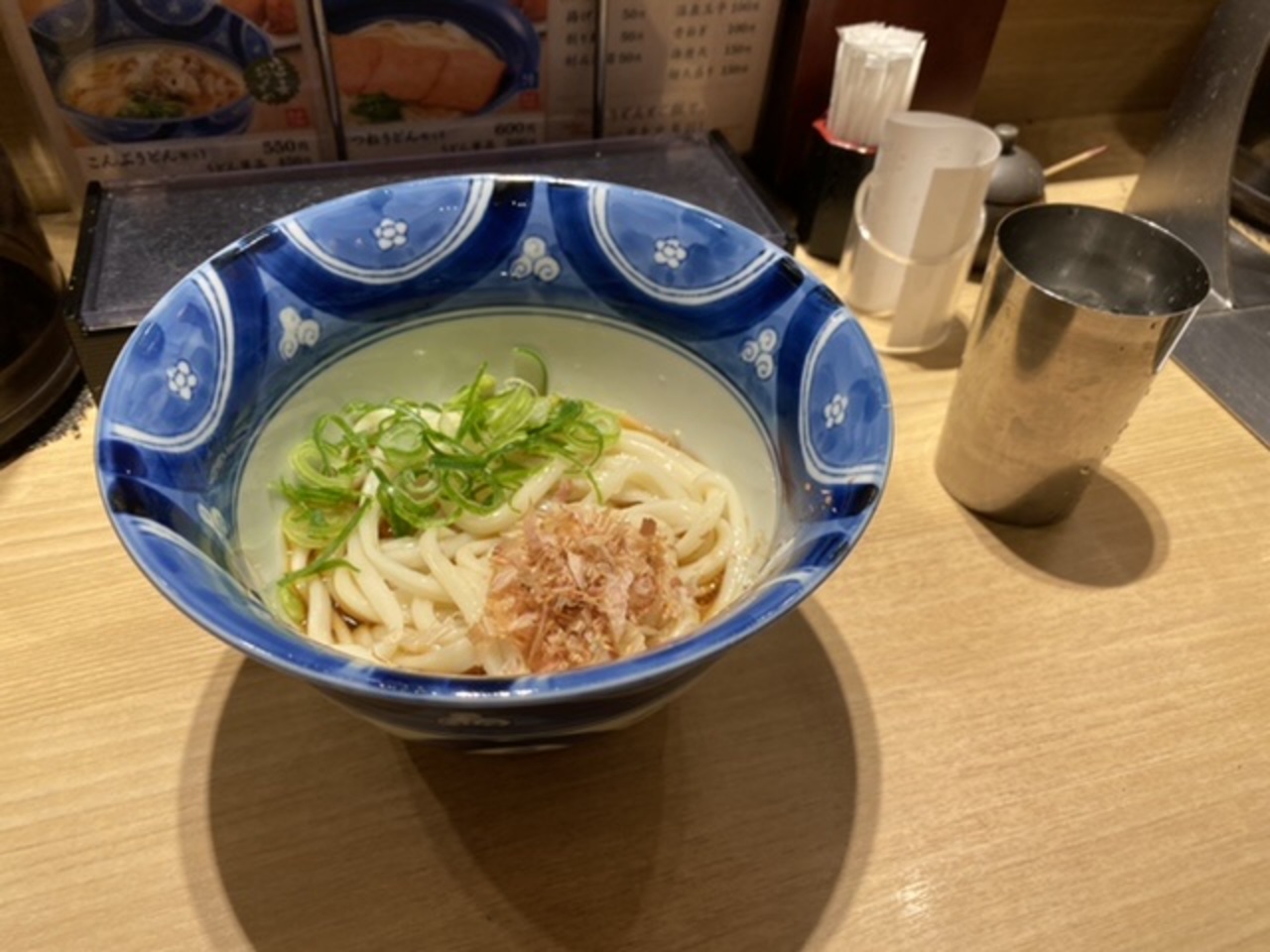 食べたのはシンプルに豚骨白690円!麺は粉落とし。替玉は辛子高菜と紅生姜で。- 旅行時期
