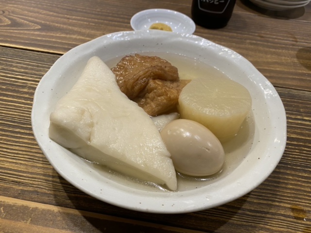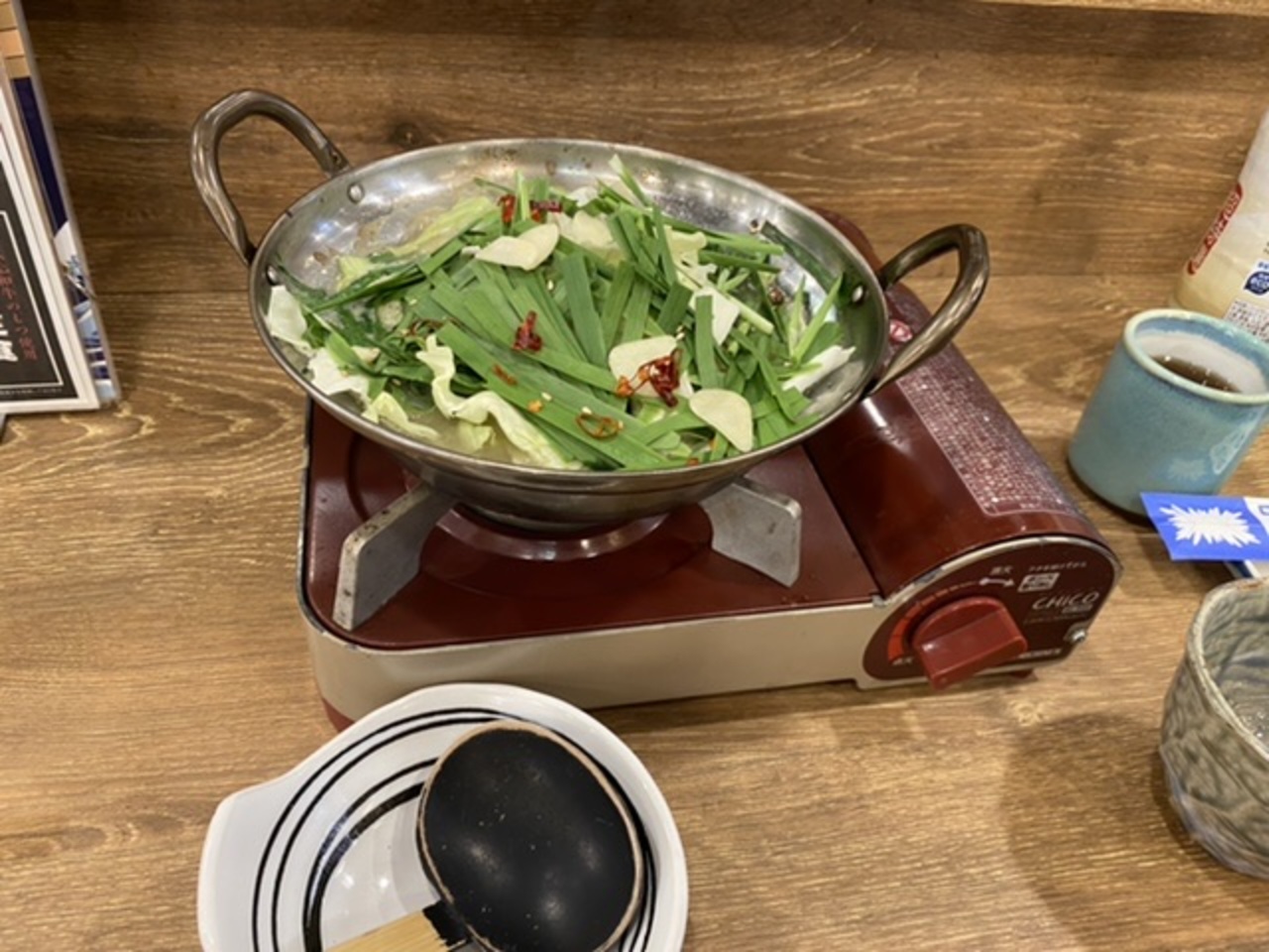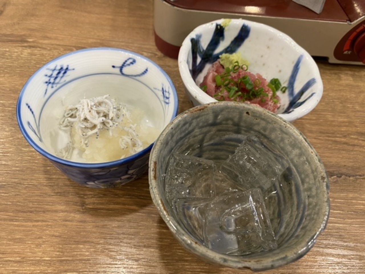 先ずは薩摩白波ロックにしらすおろしとネギトロの小鉢を。そしてもつ鍋1,280円は味噌味を選択!美味しかった。- 旅行時期