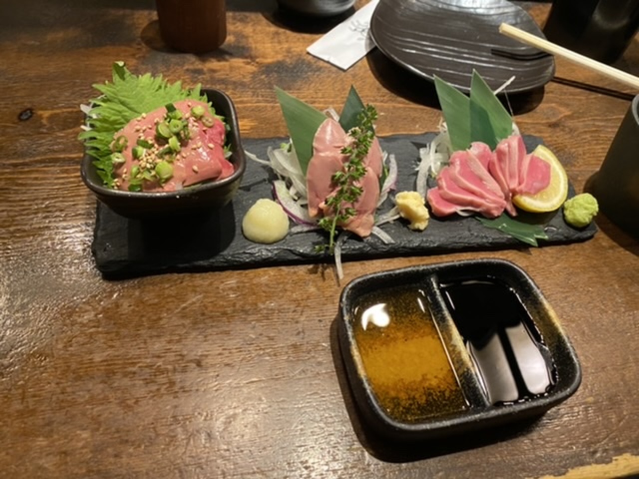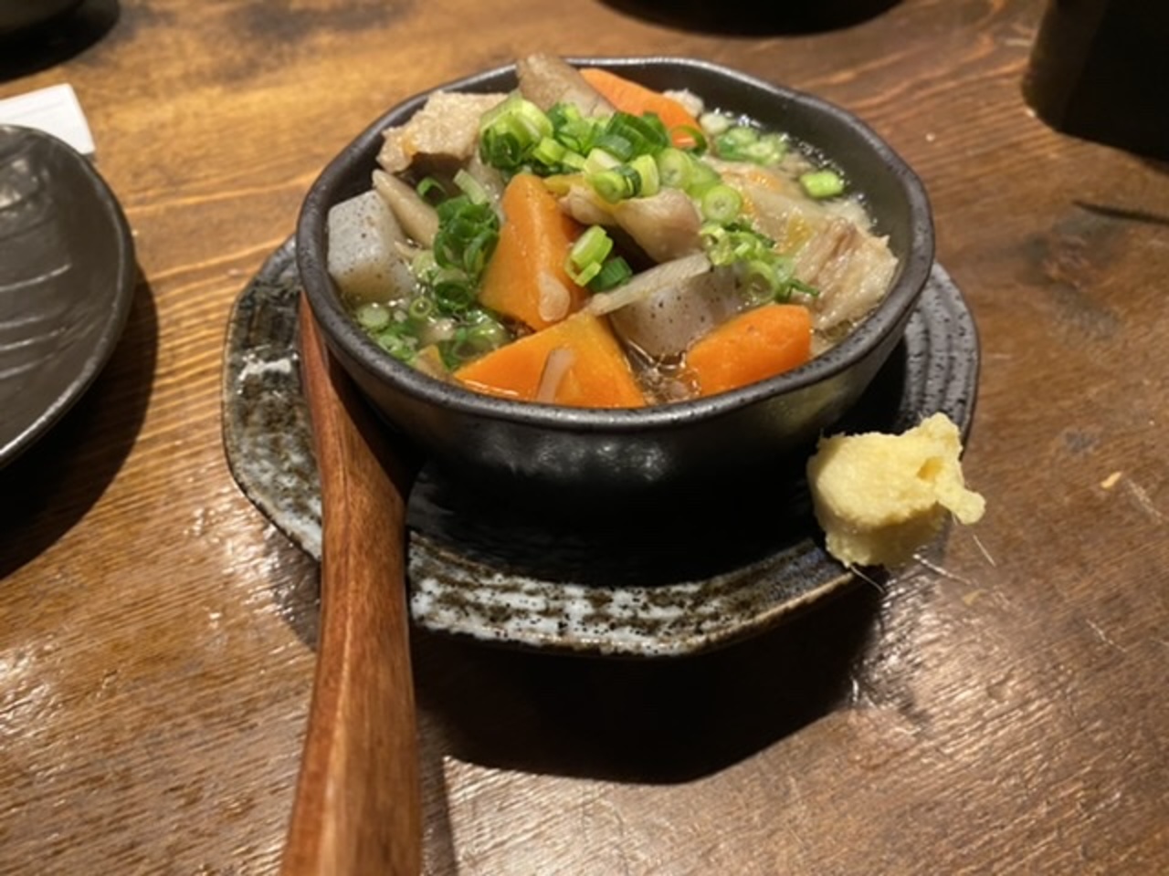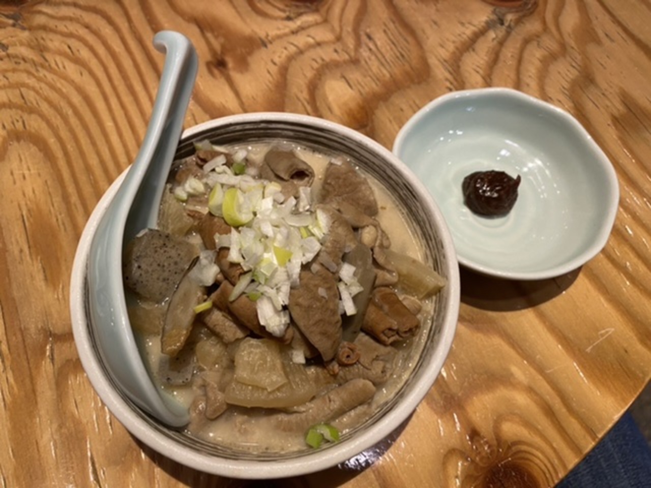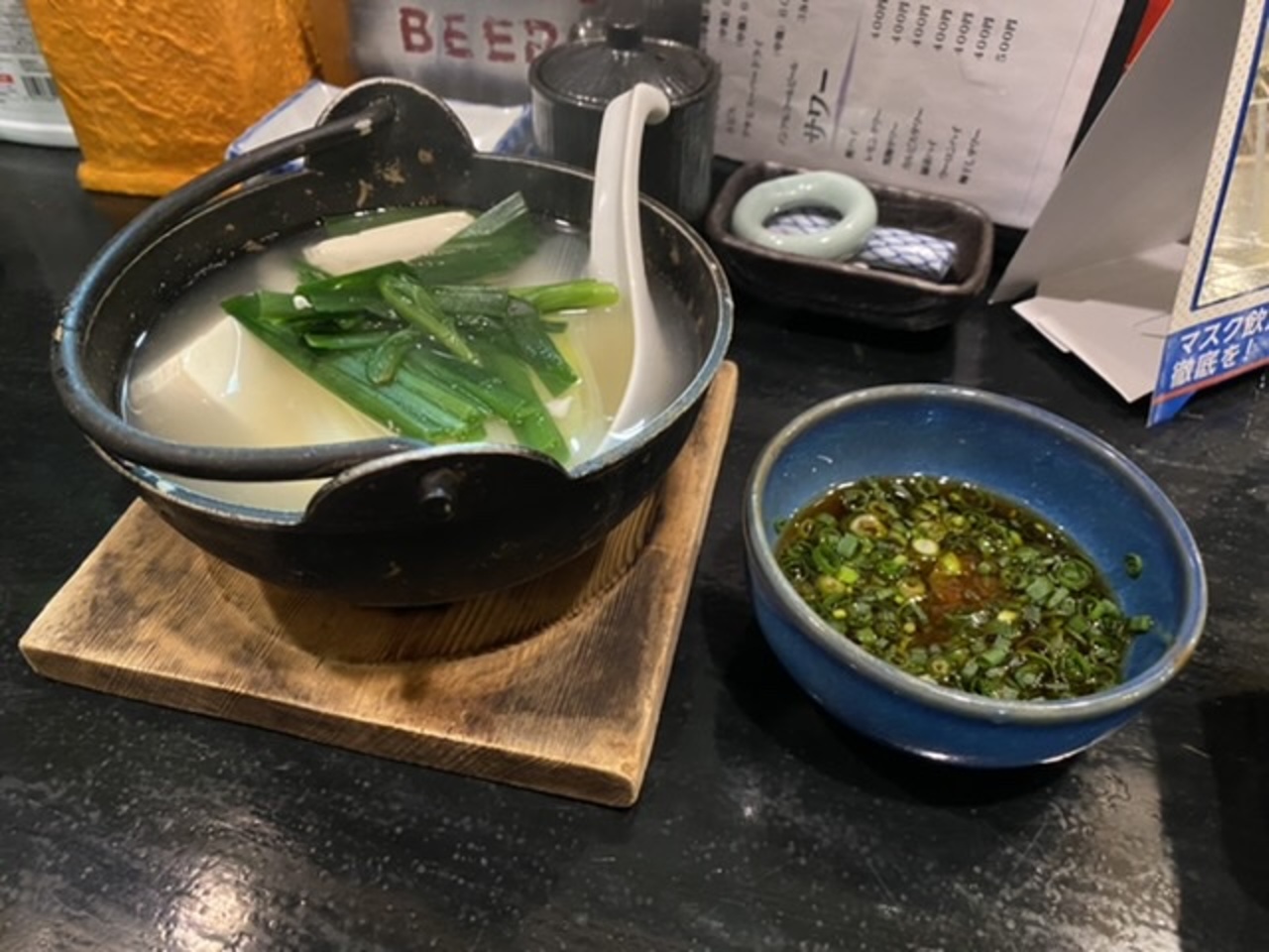 先ずは薩摩白波ロックにしらすおろしとネギトロの小鉢を。そしてもつ鍋1,280円は味噌味を選択!美味しかった。- 旅行時期