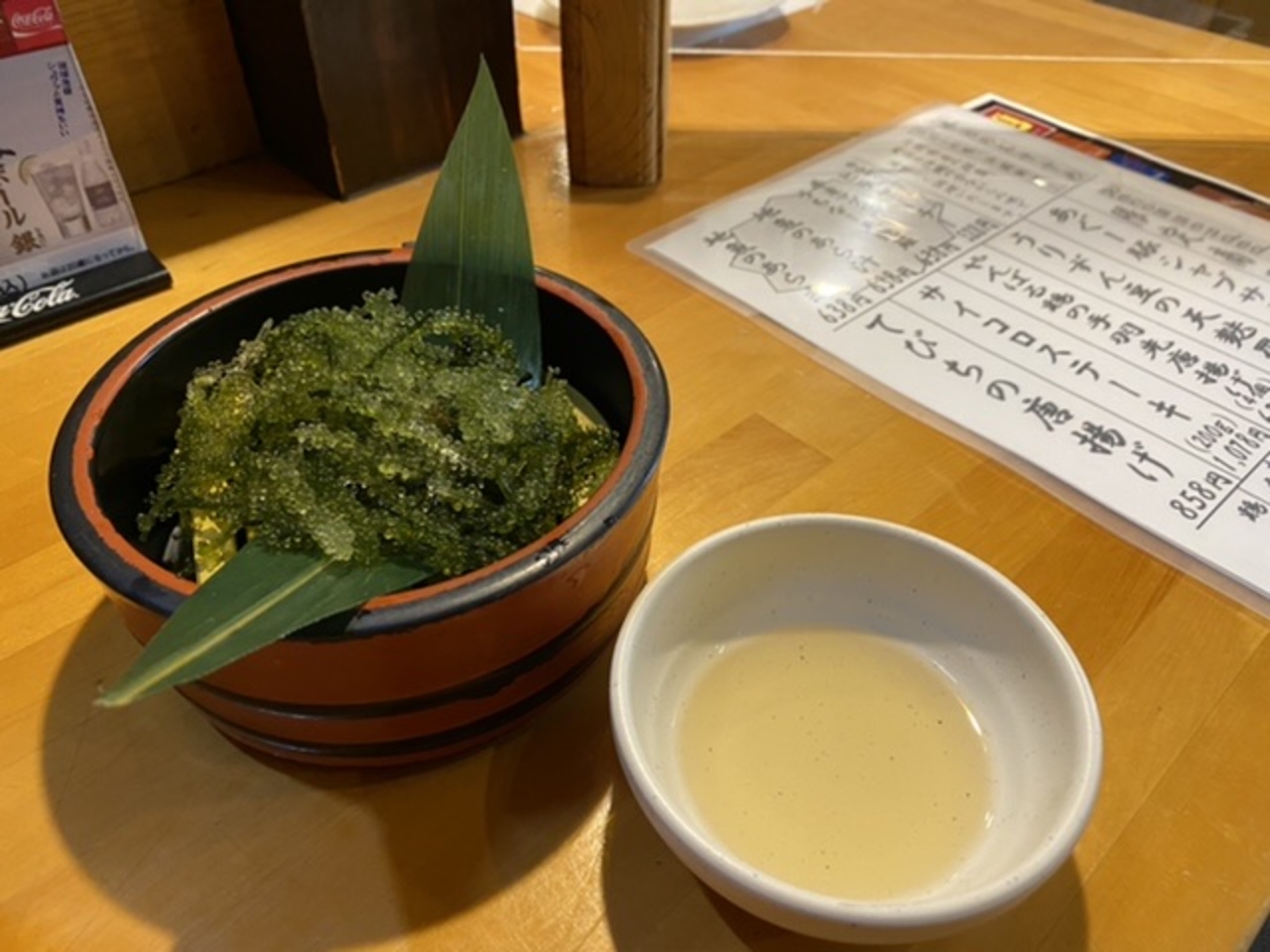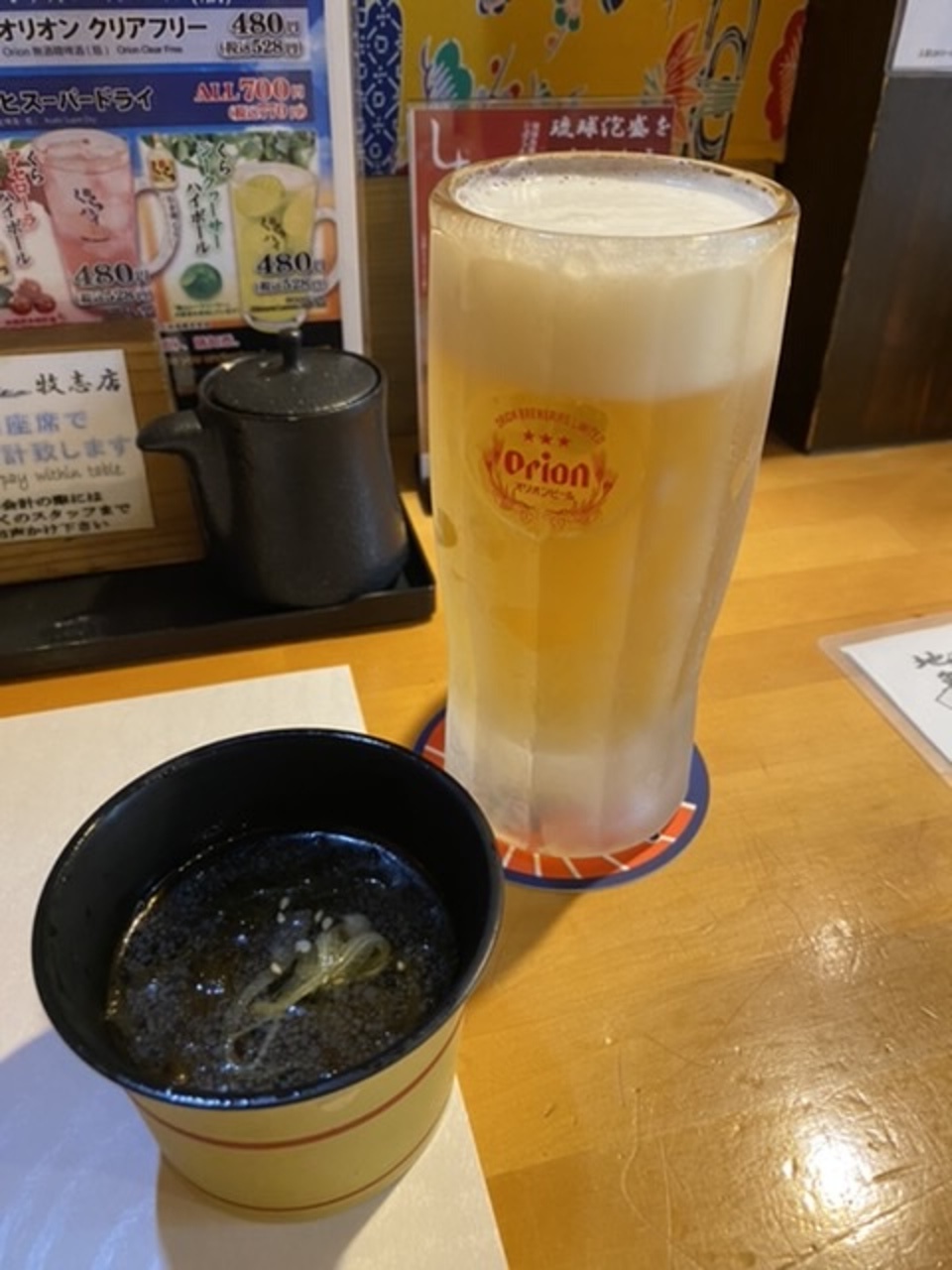 60分飲み放題の乾杯プラン680円で先ずは発泡酒。カツオたたきに海ぶどう、、、あとは泡盛で。- 旅行時期