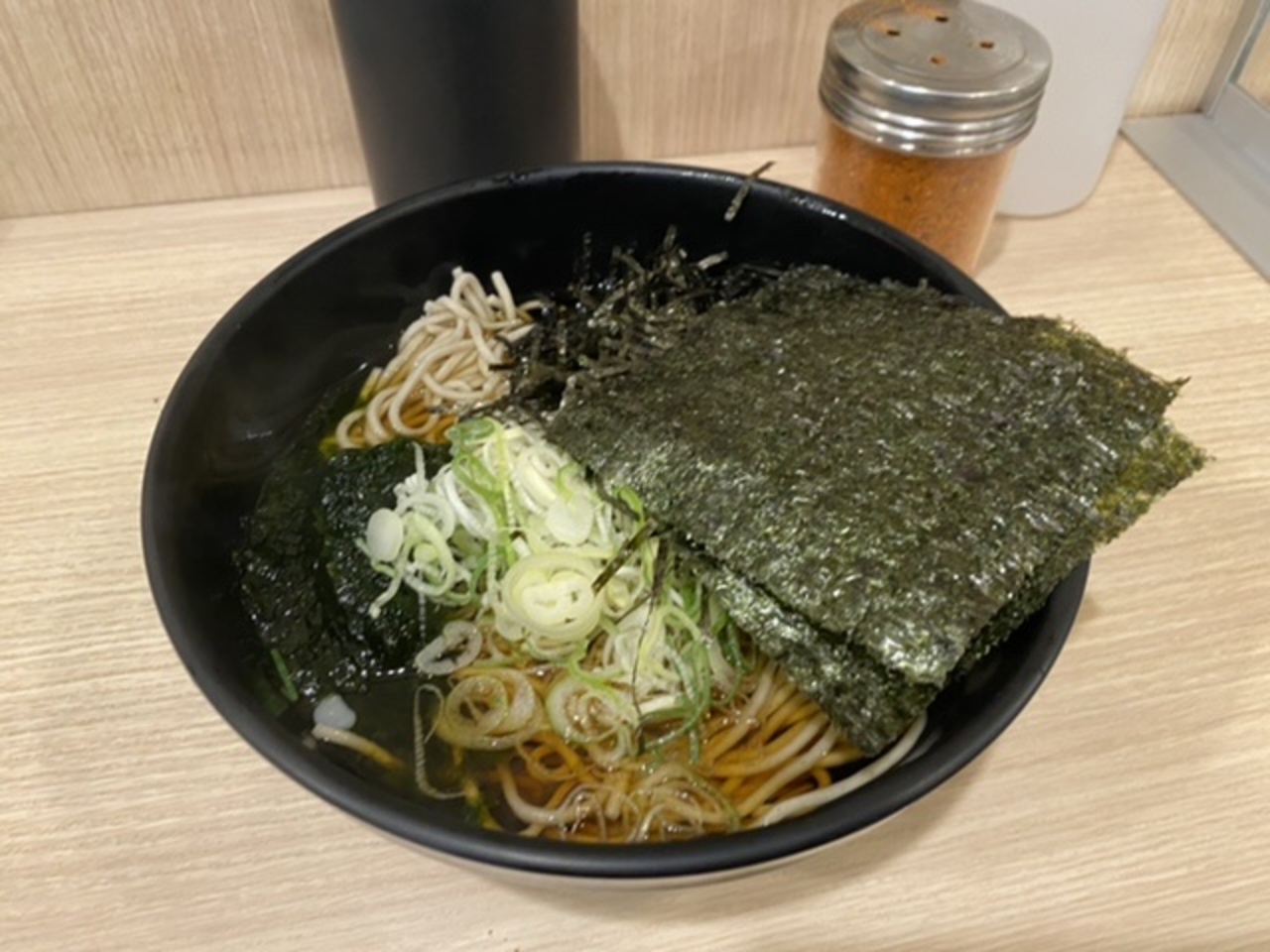食べたのは品川そば520円!焼き海苔、刻み海苔、岩海苔が入った海苔づくしのそばです。海苔好きなので良かったですよ。- 旅行時期