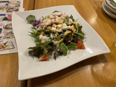 定番の鬼おろし鶏唐揚げにシーザーサラダを飲み放題で!ここはリーズナブルでイイです。- 旅行時期
