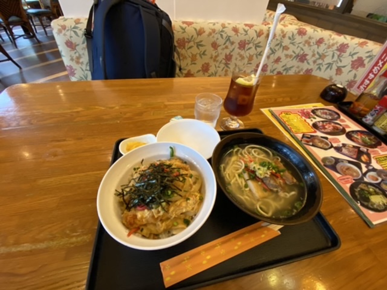 食べたのは宮古そばとかつ丼のセット!かつ丼はイマイチかな!?- 旅行時期
