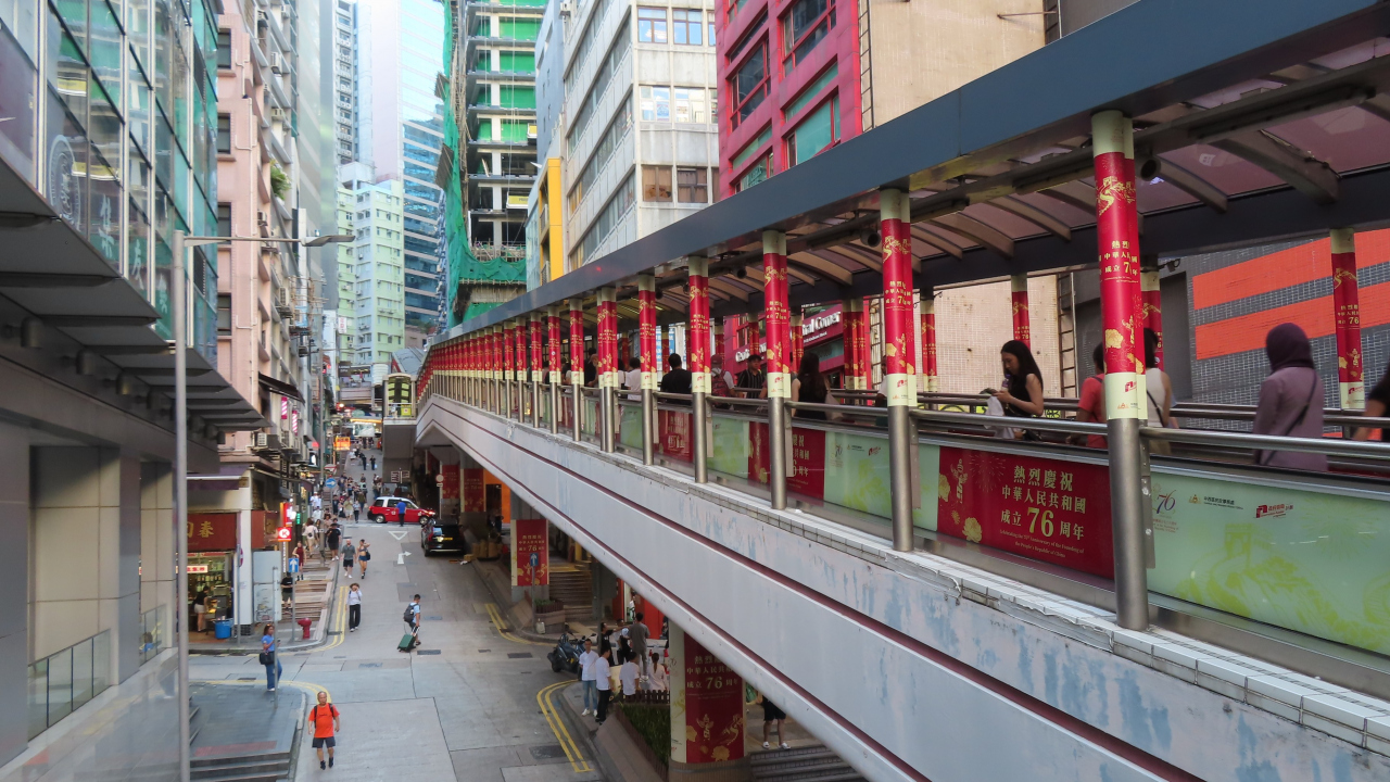 セントラルの街にあるヒルサイドエスカレーター、動く歩道です。