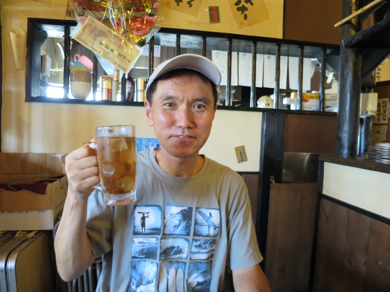居酒屋がランチをやっているなんて驚きでした!もちろん昼間からお酒も飲めますよ!しかし私たちは、ランチだけでした。最初にお茶が出てきましたがそれもジョッキに入ったウーロン茶でした。まるでウーロン杯を呑んでいるみたい!(笑い!)