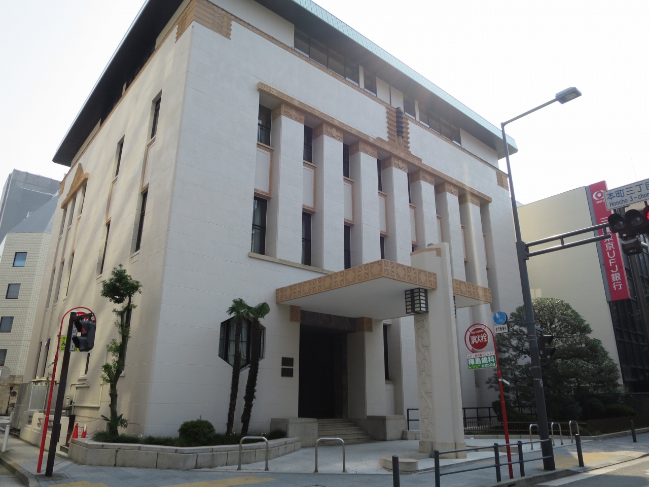 戦前から残る港街の銀行建築の一つですね、まるい円柱の柱がとても象徴的でいいですね、クラシカルでレトロな感覚がこれまたステキな建物です。現役の銀行として今も使われていますが重要文化財的な存在の建物ですね!こちらも素晴らしい建物です!