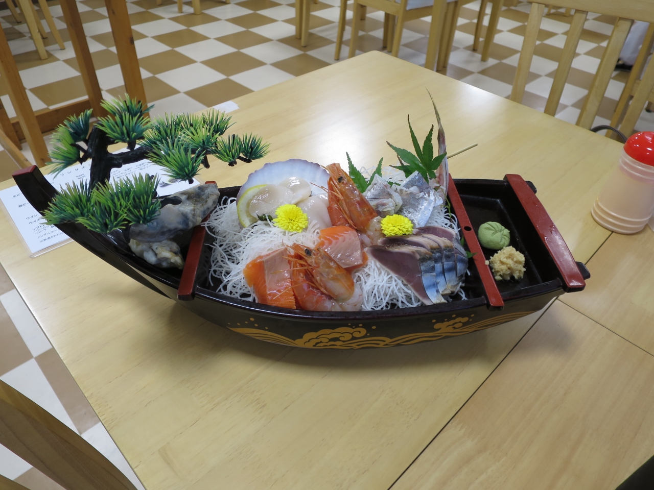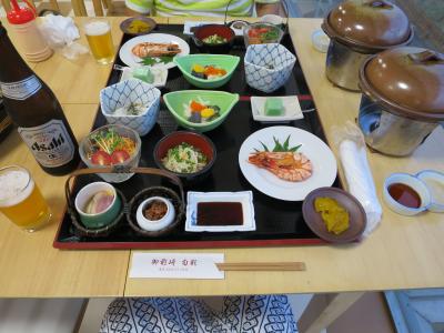 夕食は、海の幸を使った料理が並びました。船盛に金目鯛の煮つけなどおいしかったですよ!イセエビは、残念ながら出てきませんでした!(料金から見ると妥当なところだと思います!)
