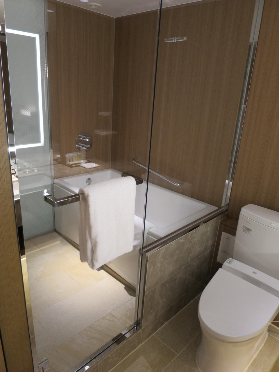 ベッドも大きくテレビもワイドですばらしいです!バスルームもシャワーブースがバスタブと別れています。また日本風の洗い場までついているので日本人にとっては、うれしい仕様となっています。(アメニティーも一流品がそろっています!)