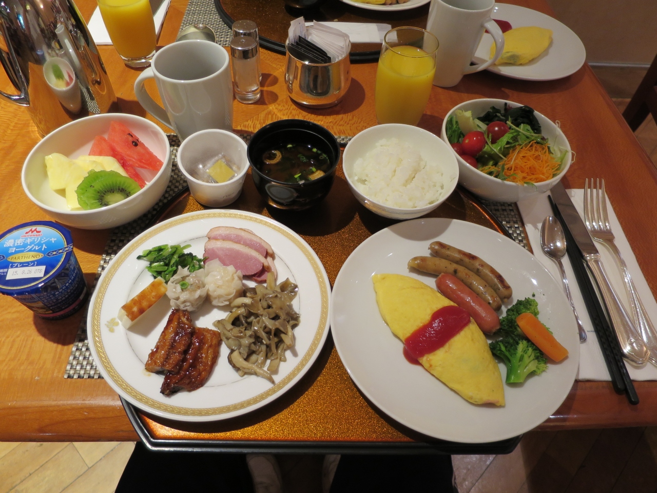 翌日は、ホテルのレストランでバイキングの朝食、ヒルトン自慢の和洋中の料理をお腹いっぱい頂きました。